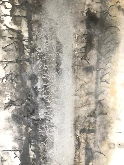 My work creates a visceral bridge between our physical and perceptual experiences of natural phenomena. I use materials on vast scales to overwhelm peripheral vision and to increase potential points of contact for the viewer. Scorched wood, plant fiber beaten and mixed with the dust of oxidizing steel and paper slowly fading in the sun tap into emotions triggered by our remembered experiences of texture, color and scale.