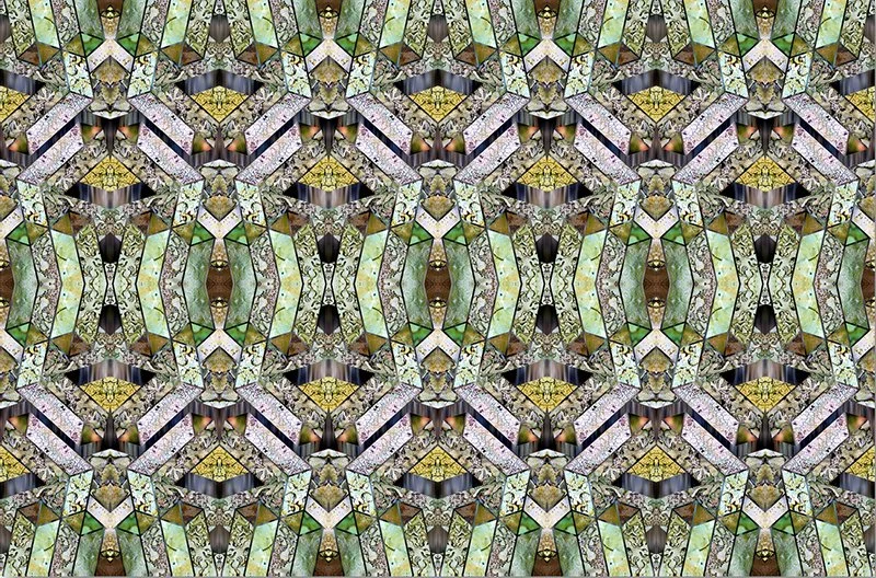 That attention to structure led me into digitally constructed, Op-Art–informed photo collages and later time-based animations with sound. Josef Albers’ Structural Constellations series—geometric constructions that destabilize space through line, repetition, and slight deviation—initially opened this direction for me, offering a model of rigorous visual inquiry grounded in how the eye organizes form. Building from my own photographic source material, I translate organic imagery into geometric architectures that hover between depth and flatness, stillness and motion.